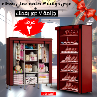 • عرض دولاب 3 ضلفة عملي بغطاء + جزامة 7 دور بغطاء