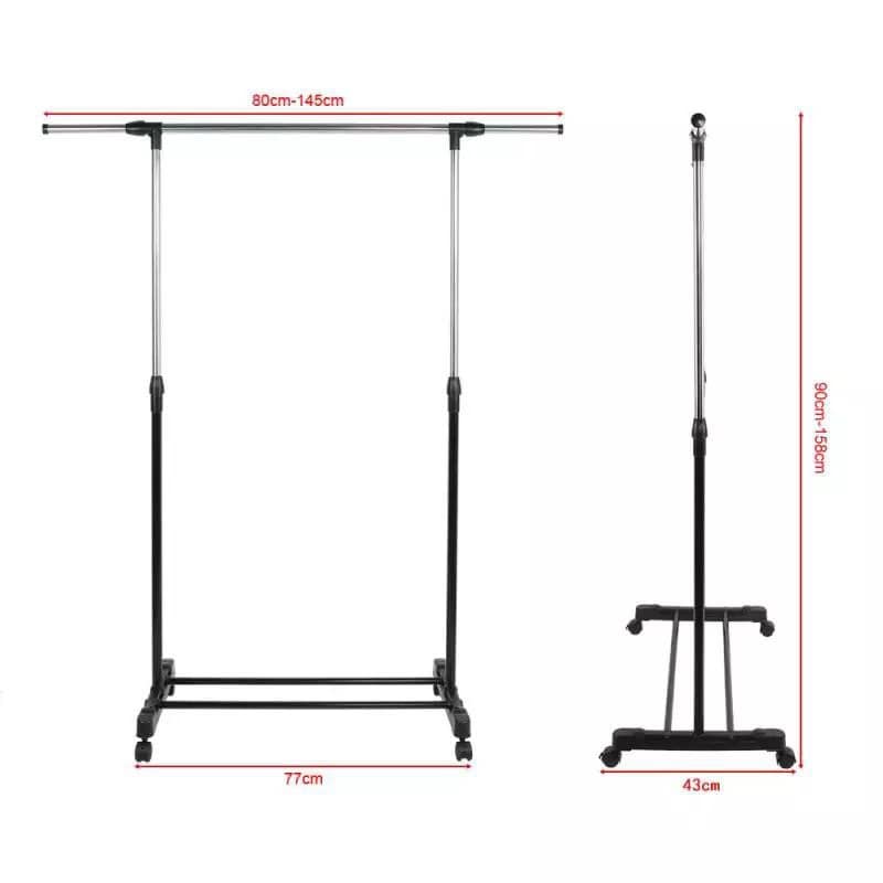 استاند ملابس فردي – اللون عشوائي – الأبعاد : (الارتفاع: 155 العرض: 75 ) – المواد: معدن – النوع: شماعات – ارتفاع قابل للتعديل