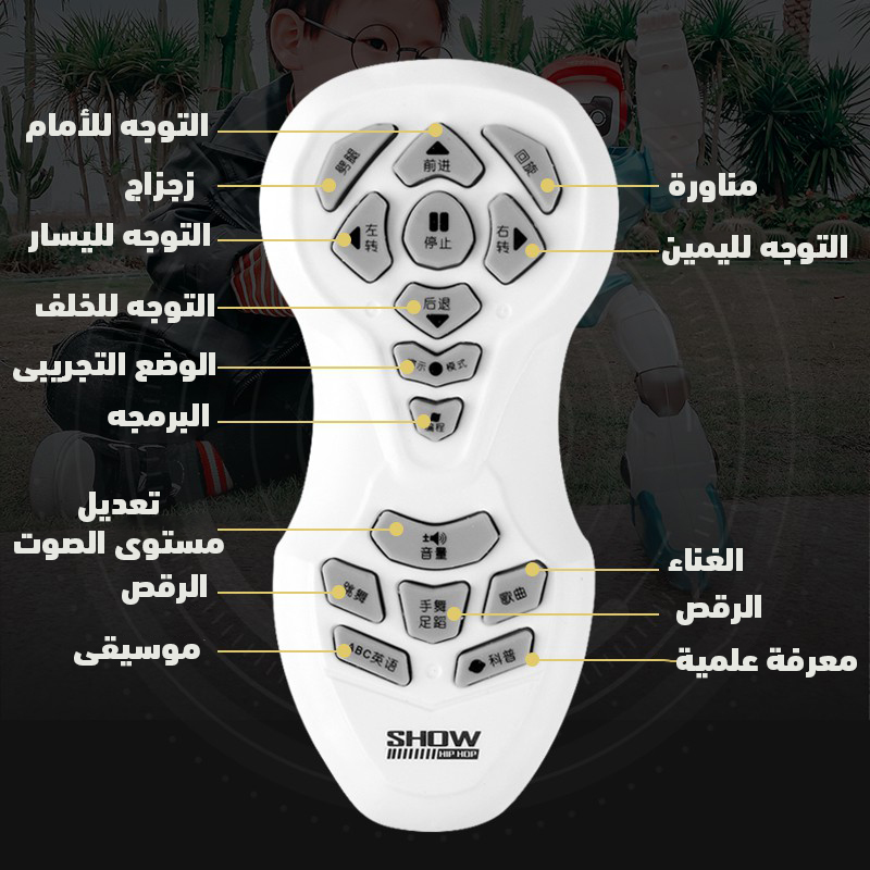• ريموت الروبوت بيشتغل ببطارية.