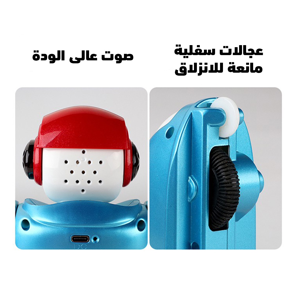 • الروبوت بينور إضاءات ليد ألوان علشان يلفت أنتباه الطفل.