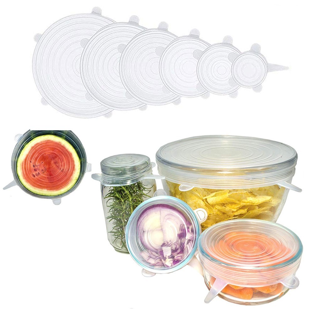 • عرض غطاء حلة معدن متعدد المقاسات + 6 قطع أغطية سيليكون فائقة الإمتداد قابلة لإعادة الاستخدام