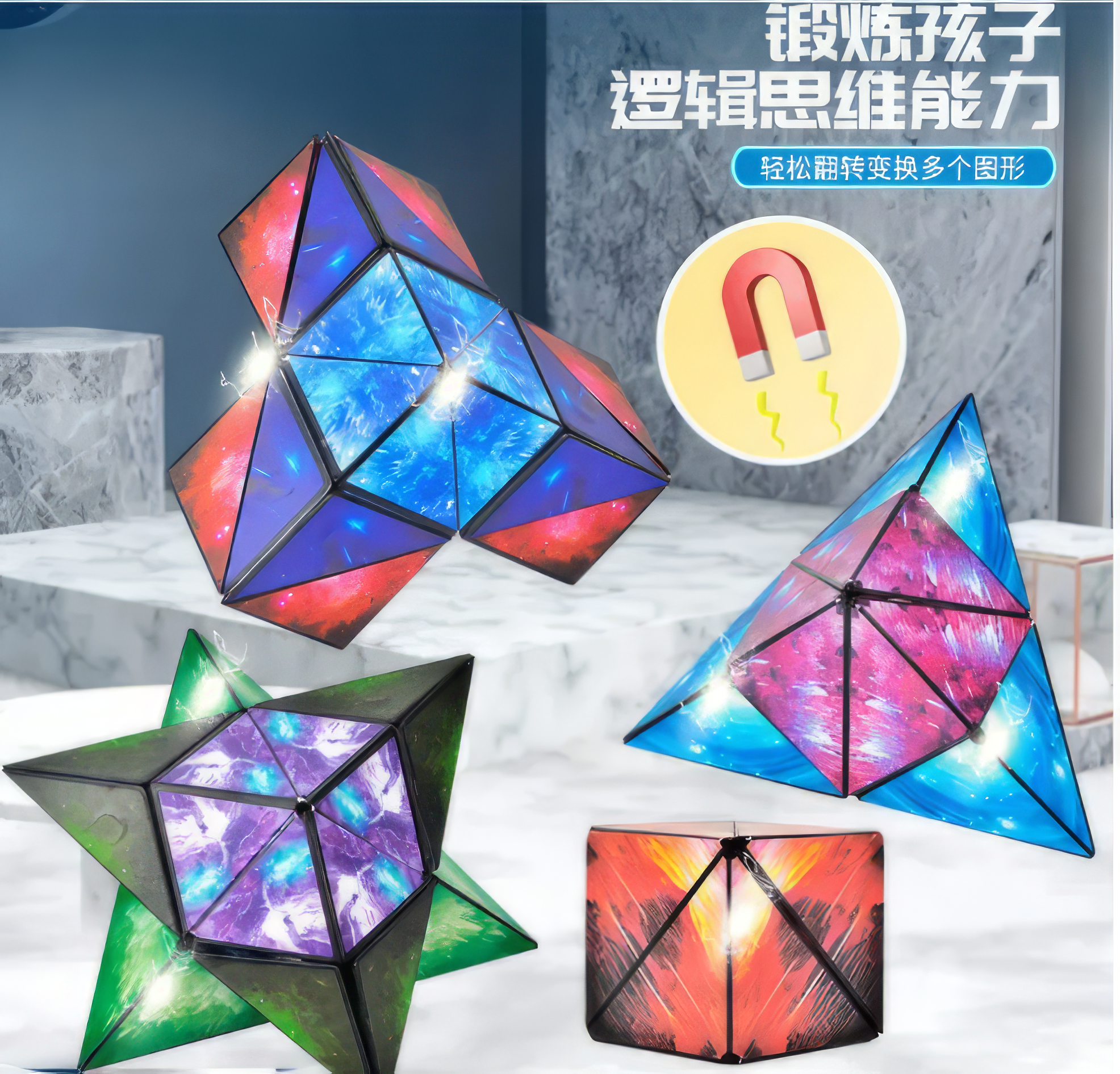 • فيه 36 مغناطيس نادر لتصميم مبتكر يتحول إلى أشكال كتير.