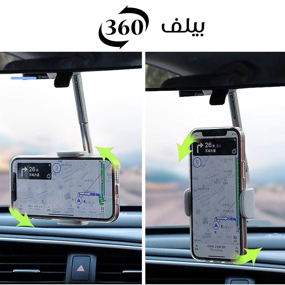 • متابعة الموبايل وانت بتسوق بتخليك مشتت ومش بتركز في طريقك، مع حامل الموبايل في المراية، الموبايل هيكون قدام عينك وانت بتسوق هتتابع ال GPS والطريق في وقت واحد وهتفضل مركز على الطريق 😉