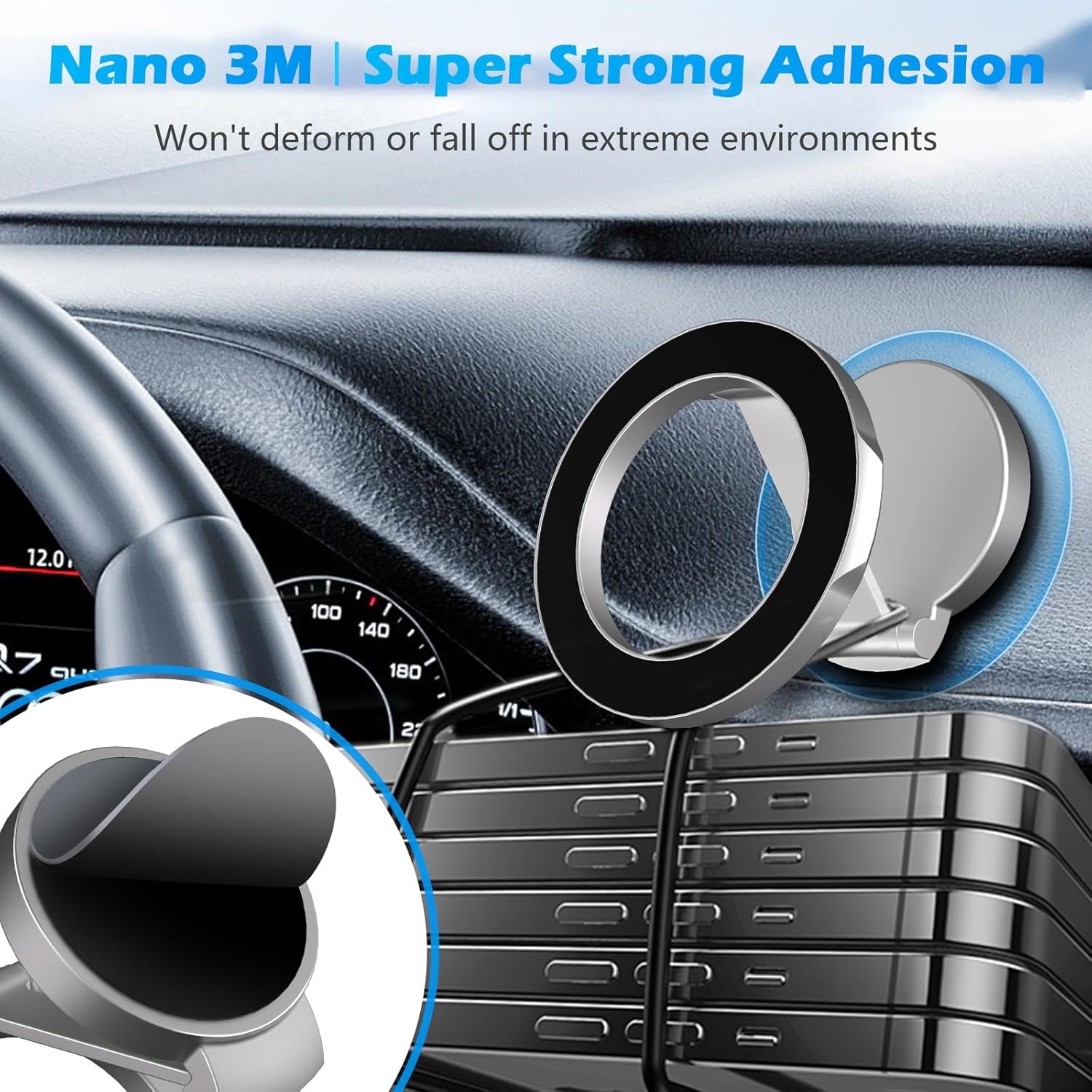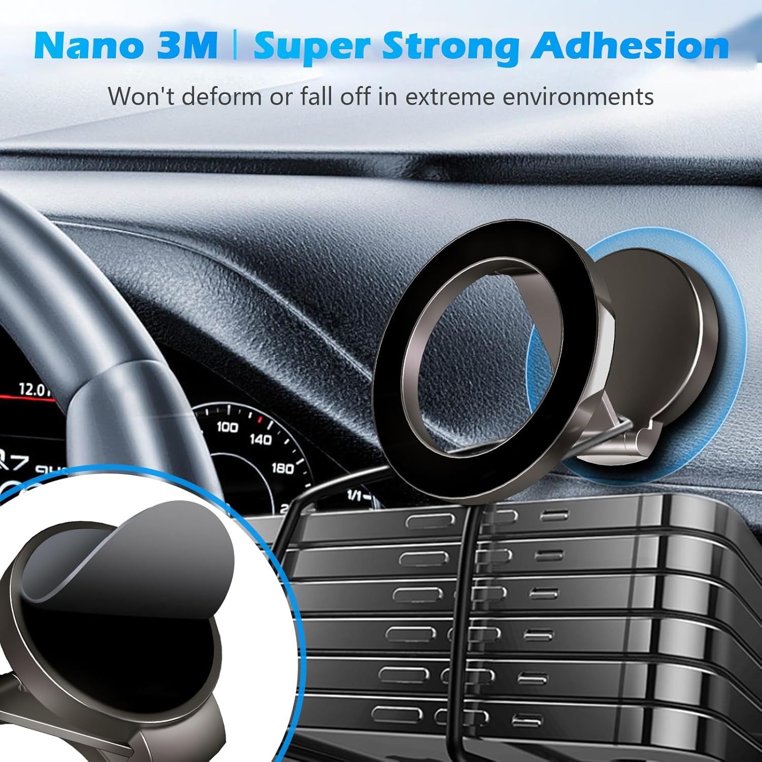 🪄 تثبيت سهل وسريع على التابلوه أو المكتب بدون أدوات.