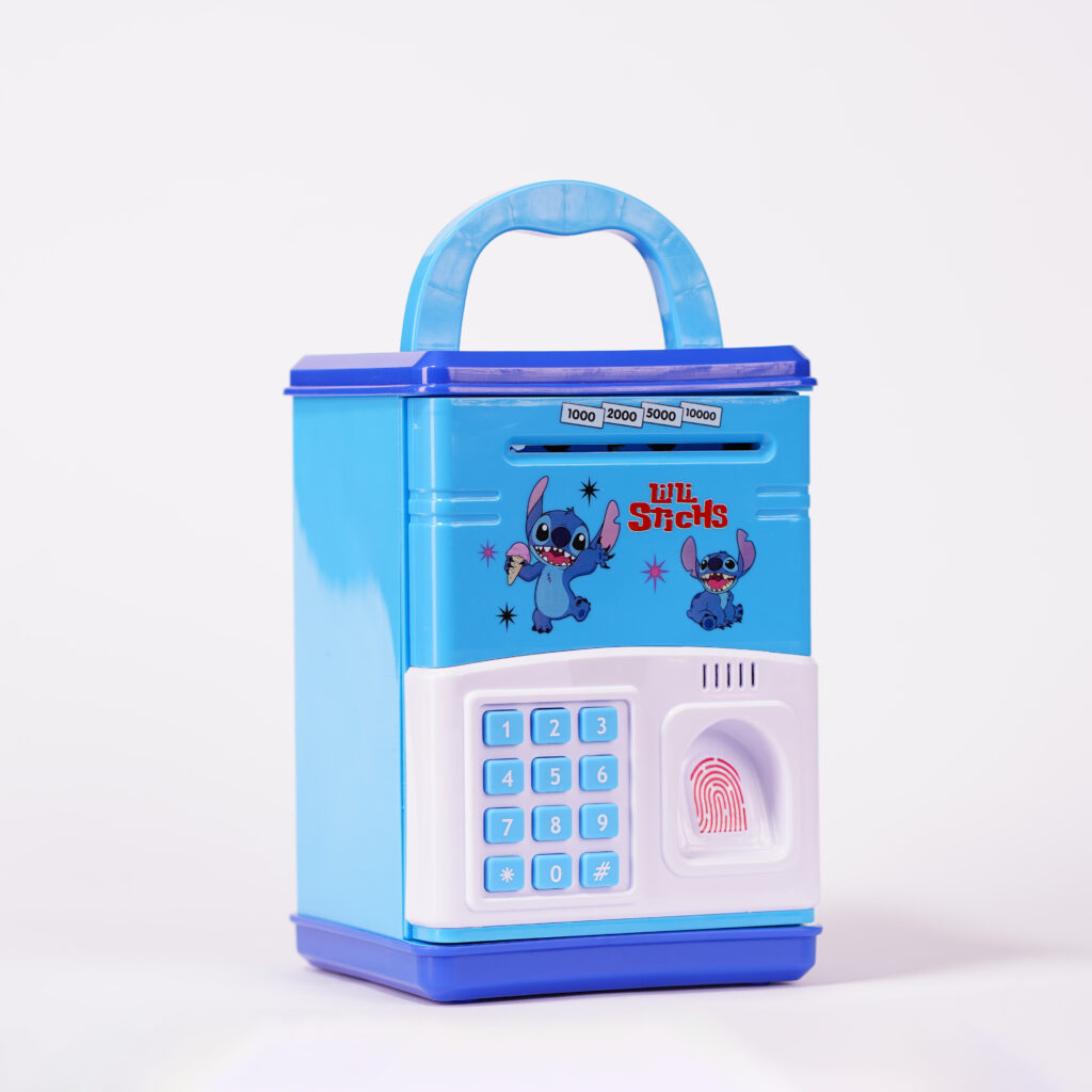 • الحصالة مزودة بحساس بصمة، يعني الطفل لازم يحط صباعه عشان يفتحها، وده يضيف تجربة واقعية ويخلّيه يحس بالأمان والخصوصية.