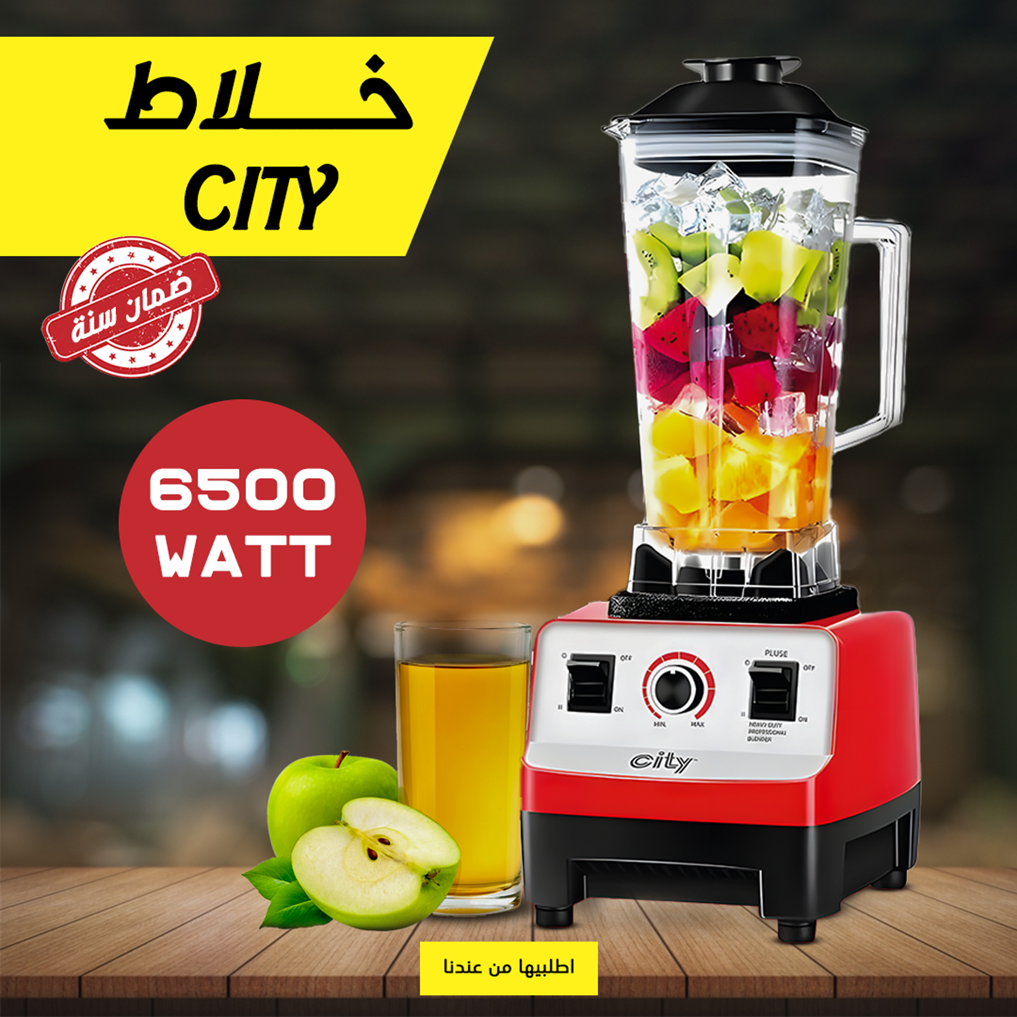 • “خلاط CITY 6500 وات 💪✨، بجرش الثلج بمنتهى السهولة ❄️🔪 ومعاه ضمان سنة كاملة 📅🔒! دا الخلاط اللي هتحتاجه في مطبخك👌🍹.” مستنيه أيه أطلبيه من عندنا .