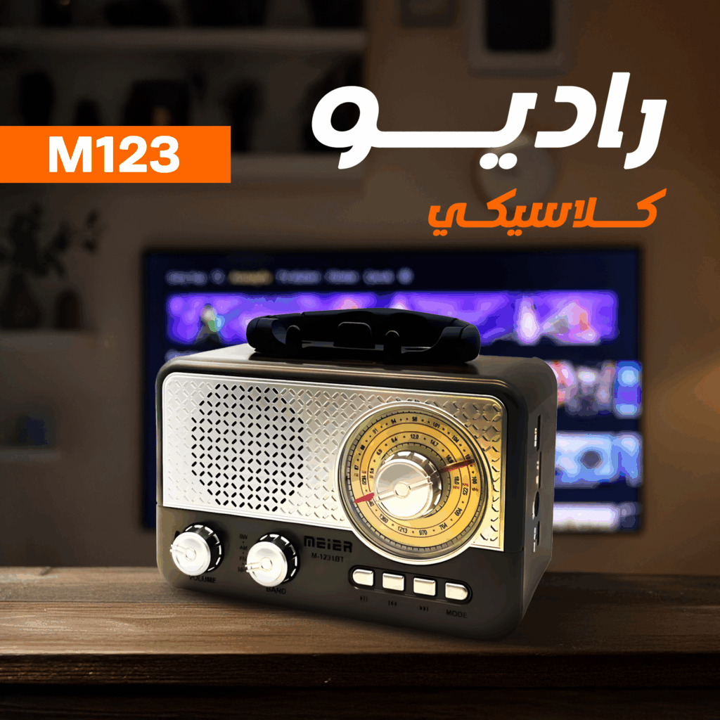 رجع أيام زمان بصوت أوضح وأقوى مع راديو كلاسيكي M123 📻🎶 بلوتوث، USB، وشحن سريع… كله في جهاز واحد صغير وشيك 🔋✨