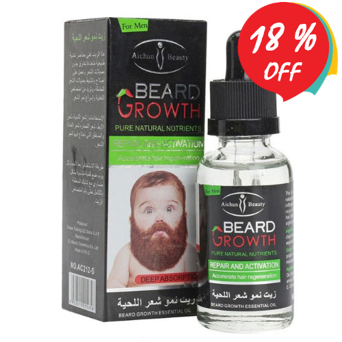 زيت نمو شعر اللحية – هذا الزيت غني بعناصر تغذية طبيعية متعددة تخترق جذور بصيلات الشعر و تعمل علي إصلاح و تنشيط بصيلات الشعر الخاملة , و تزيد من امتصاص التغذية و إسراع نمو الشعر – الاستخدامات : شعر اللحية , شعر الإبط , شعر الصدر , شعر العانة , و المناطق التي تحتاج فيها لنمو الشعر – طريقة الإستخدام : بعد الحمام كل يوم ضع كمية مناسبة بشكل متساوي مع تدليك المنطقة بالكامل حتي يتم امتصاص الزيت – العبوة 30 ملي – صنع في الإمارات