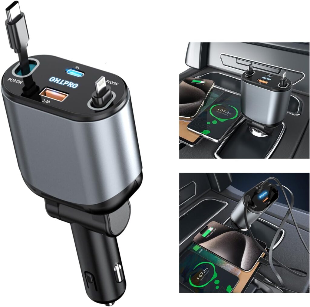 علشان دايمًا بتكون في الطريق ومحتاج شاحن عملي، سريع، وأنيق.. جبنالك شاحن السيارة الترند 4 في 1 اللي هيشحنلك موبايلك وإنت مطمن، وبدون كركبة كابلات! 💥🚗 – شاحن واحد يغنيك عن أي شاحن تاني! ⚡🔌