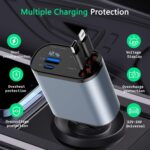 علشان دايمًا بتكون في الطريق ومحتاج شاحن عملي، سريع، وأنيق.. جبنالك شاحن السيارة الترند 4 في 1 اللي هيشحنلك موبايلك وإنت مطمن، وبدون كركبة كابلات! 💥🚗 – شاحن واحد يغنيك عن أي شاحن تاني! ⚡🔌
