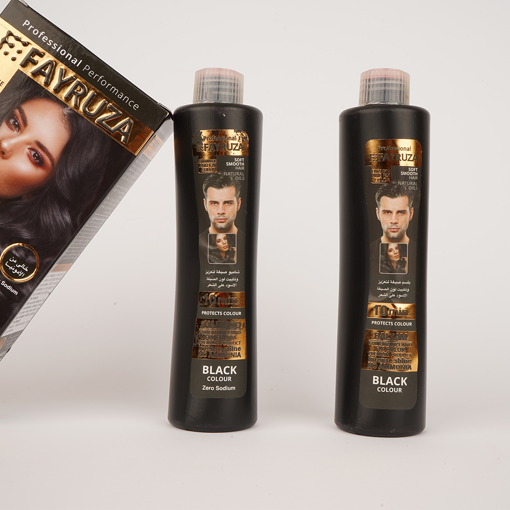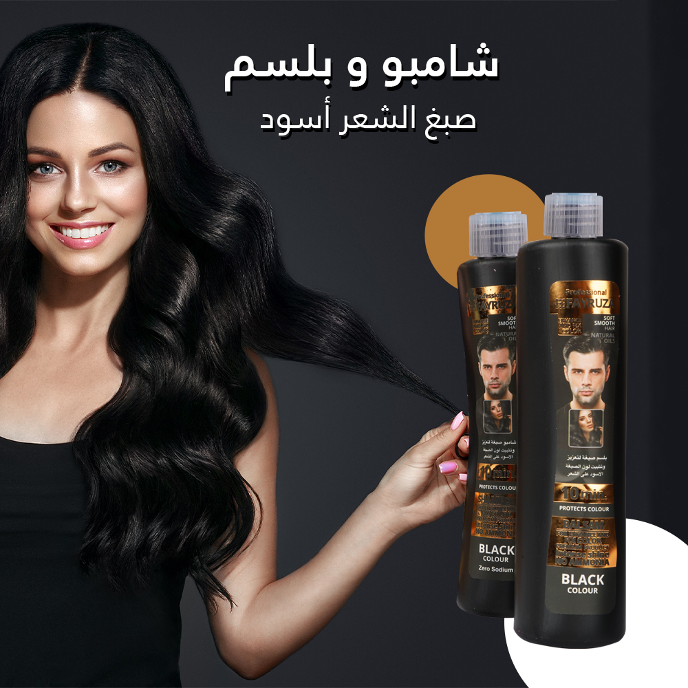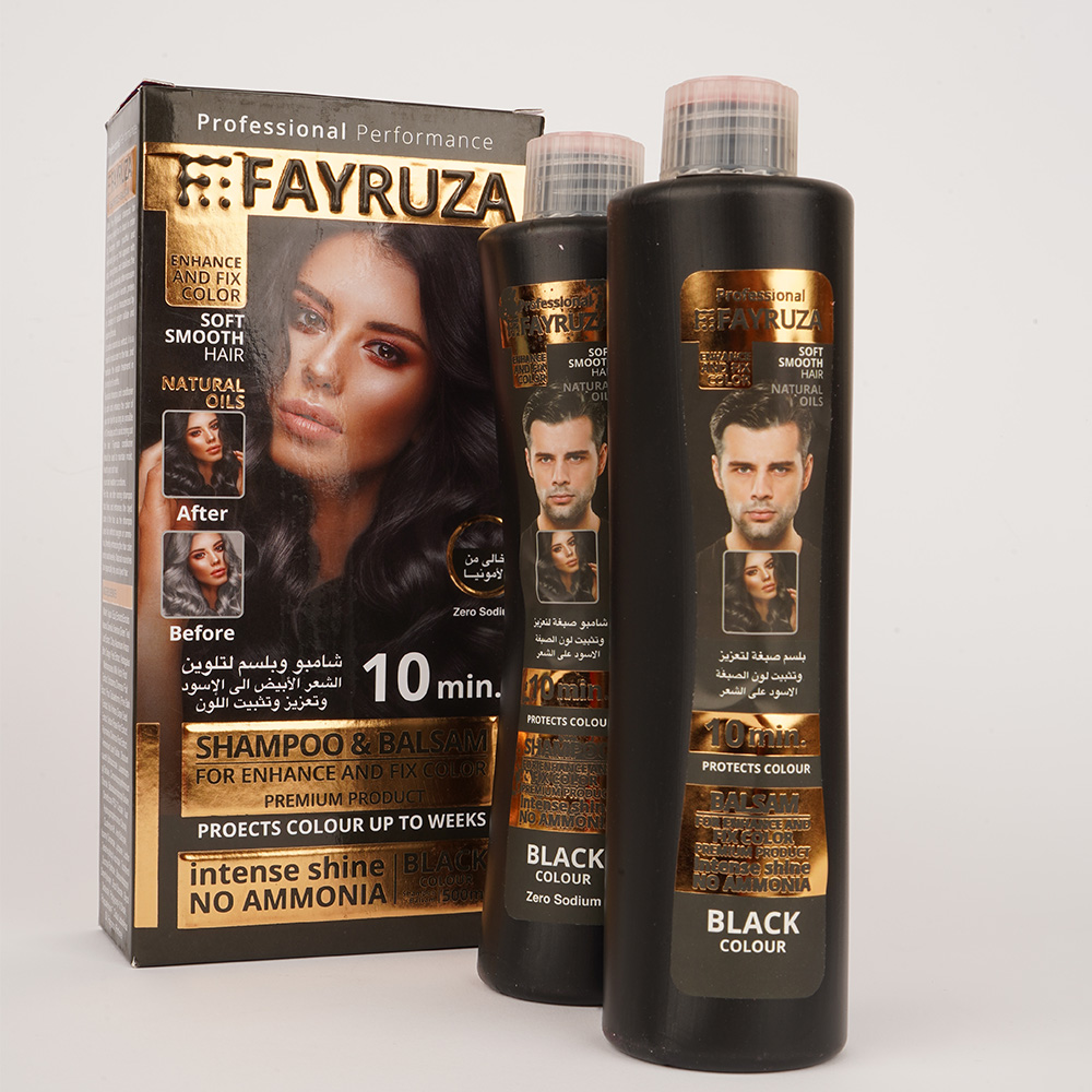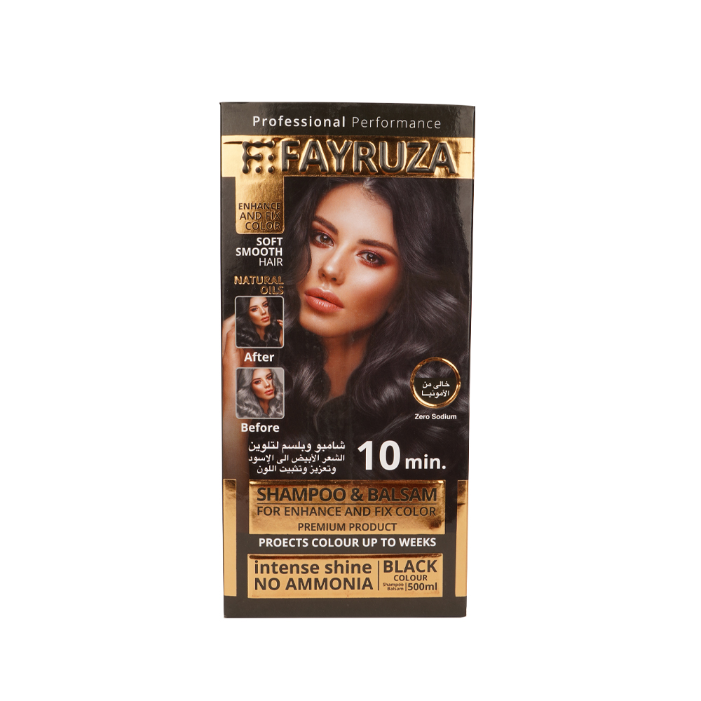 شامبو وبلسم Fayruza المخصص لتلوين الشعر وكمان بيعزز من ثبات اللون ، هيخلي شعرك شباب وهيقضي علي الشيب اللي بيظهر مع تقدم السن.