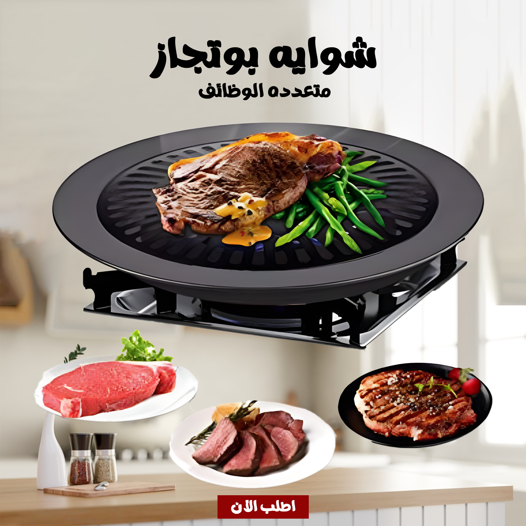 • -الوصف:-شواية بوتجاز متعددة الوظائف