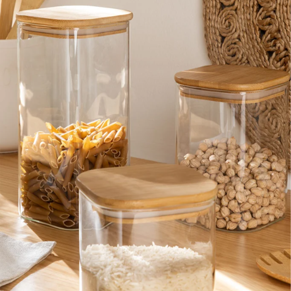 قم بترقية تخزين باستخدام هذه العلب البلاستيكيه الأنيقه مربع التي توفر رؤية مثالية غطاء أنيق من خشب الزان. يمكن تكديس الأحجام الثلاثة المختلفة أو وضعها جنبًا إلى جنب. البلاستيك متين مصنوع يدويًا ويحتوي الغطاء على قطعة من السيليكون مربع محكم الإغلاق للحفاظ على منتجاتك الجافة طازجة.