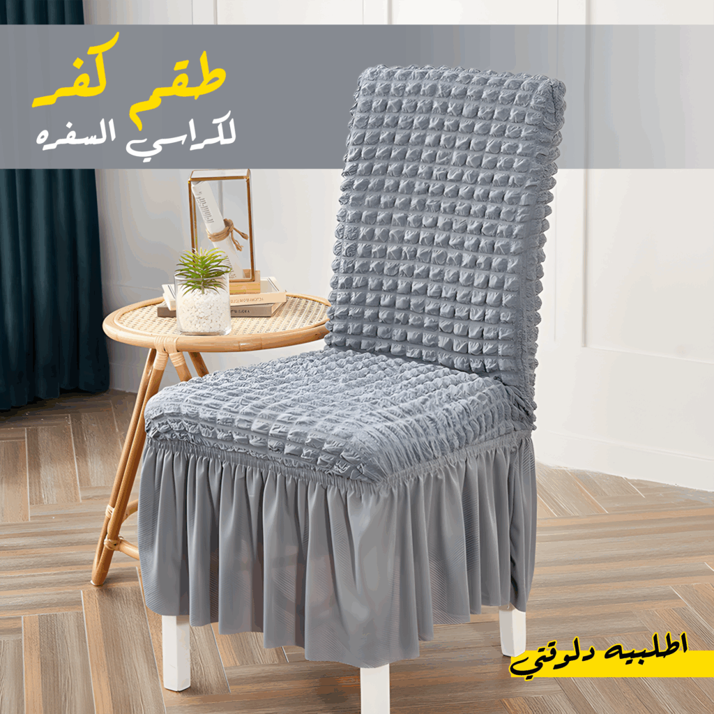 • الميزات: قابل للغسل، سهل التركيب، يحمي الكراسي من البقع والتآكل