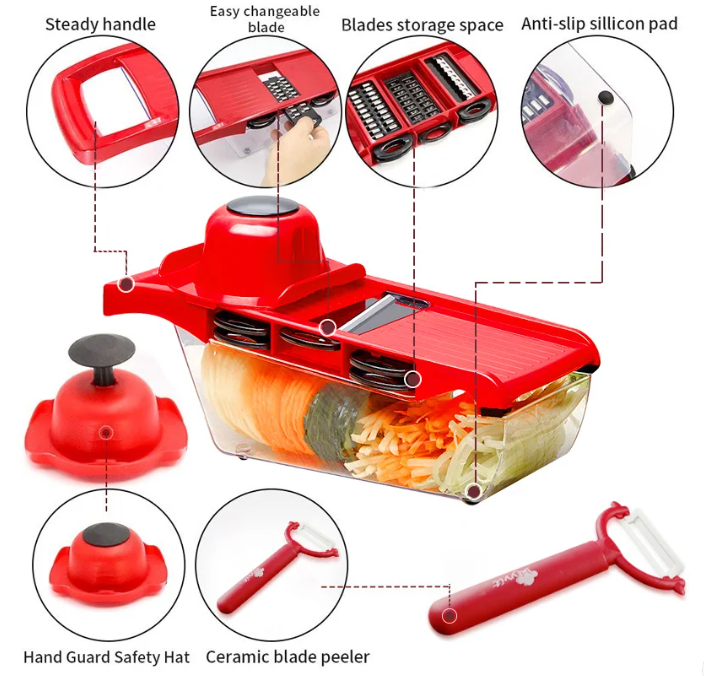 عشان متضيعيش وقت وانتي بتجهزي الأكل في العزومات وفرنالك عرض قطاعة سحرية 6 في 1 + جوانتي التقشير الرهيب بسعر ميتفوتش, الحقي اطلبيه قبل نفاذ الكمية.