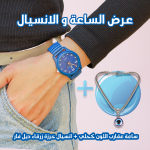عرض قطعتين ( ساعة عقارب اللون كحلي – انسيال خرزة زرقاء ديل فار )