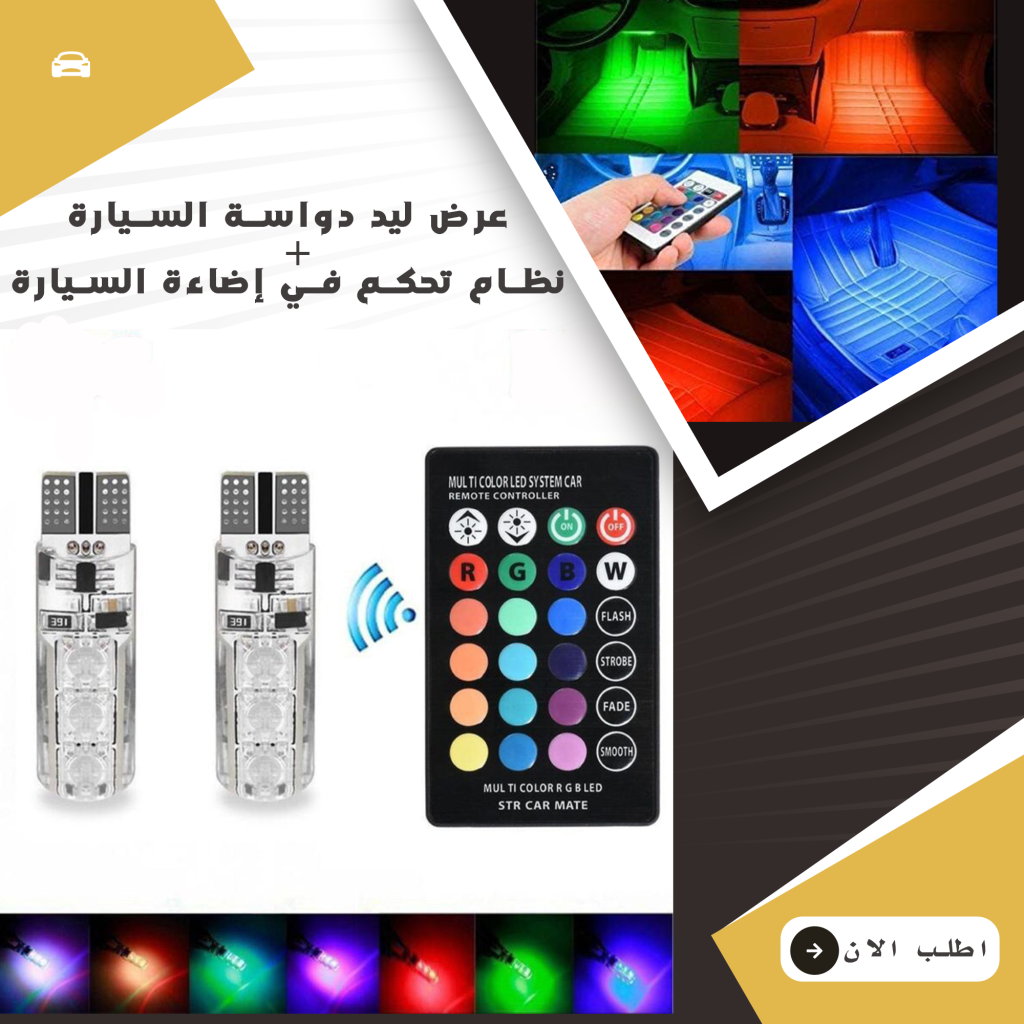 • عشان تستمتع بإضاءة وألوان مختلفة تخلى عربيتك مميزة, وفرنالك عرض ليد دواسة السيارة و نظام تحكم في إضاءة السيارة اللى بيه عربيتك هتكون أكثر جاذبية, الحق اطلبه قبل نفاذ الكمية.