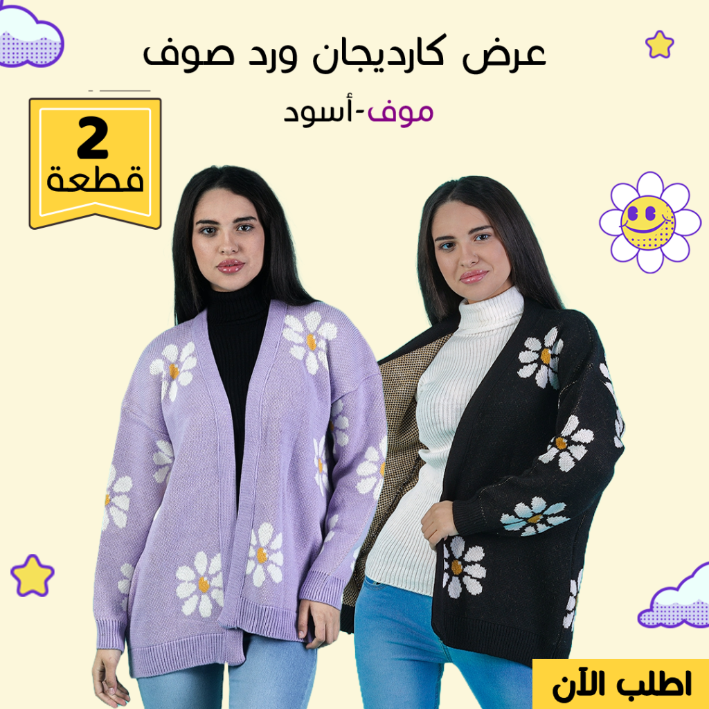 • يحتوي العرض على قطعتين تريكو صوف لونهم (أسود – موف).