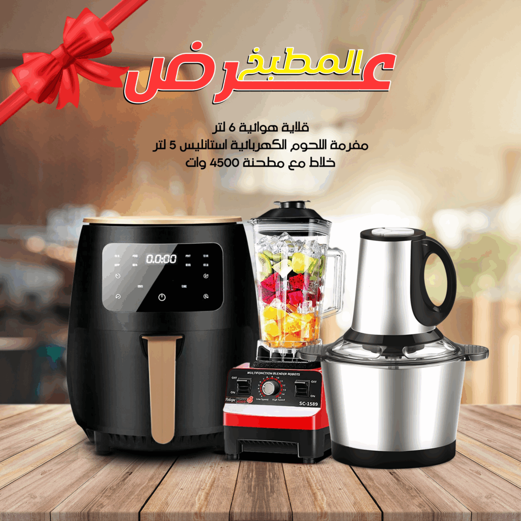 ٣ أجهزة قوية هتوفّرلك وقتك ومجهودك في المطبخ 💥🍳 قلاية هوائية 6 لتر – أكل صحي من غير نقطة زيت!🥩 مفرمة لحوم استانلس 5 لتر – 1000 وات – هتجهزي الكفتة والبرجر في ثواني!🥤 خلاط ومطحنة 4500 وات – وحش الخلط والطحن 💪