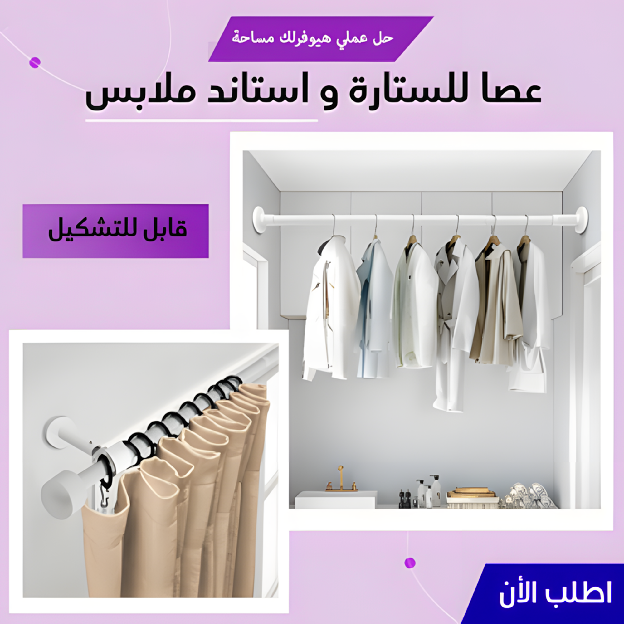 • “اطلبي عصا الستارة وستاند الملابس دلوقتي، وعيشي تجربة تنظيم مبتكرة وسهلة في بيتك!” 🛒✨
