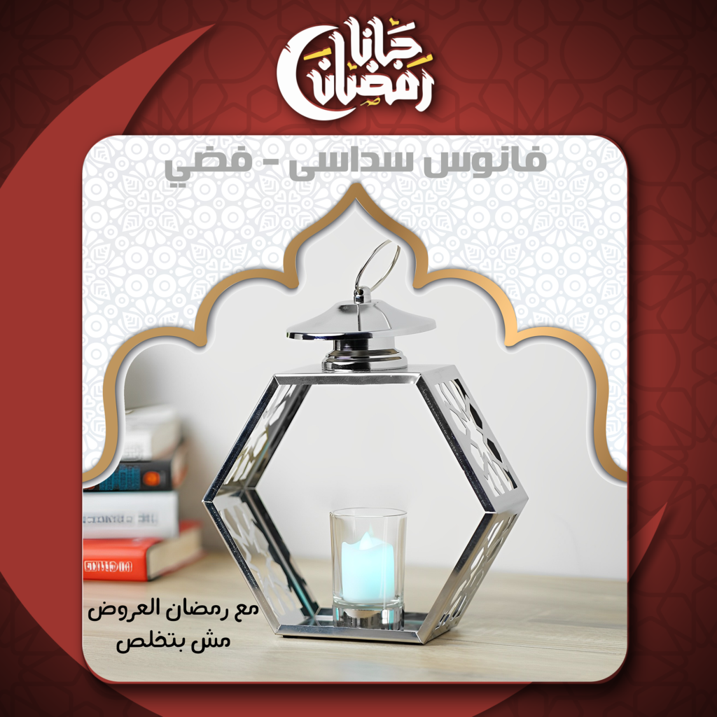 • دايما بندور على ديكور مناسب لرمضان ويغير شكل البيتويكون شيك ورقيق، كل ده هتلاقيه في الفانوس السداسي الفضي 😍 اشتريه بسرعه قبل نفاذ الكمية.