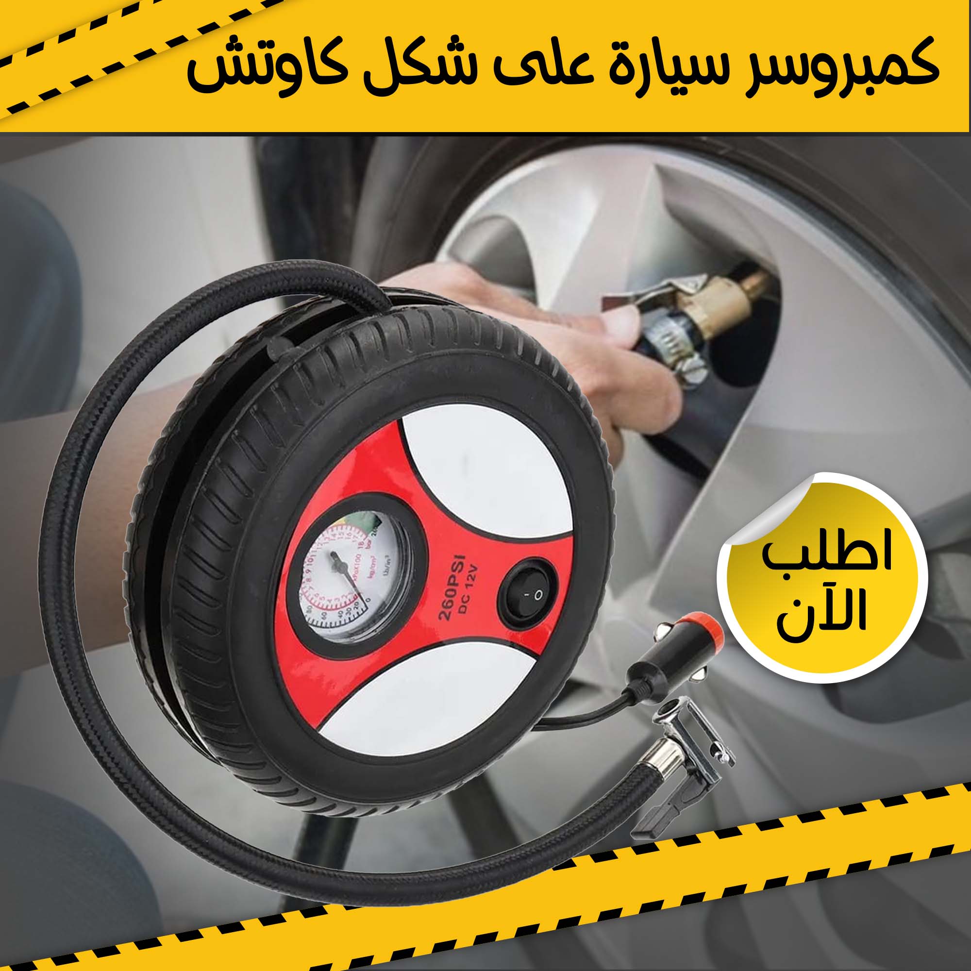 • 2- يمكن توصيله بنظام السيارة بجهد 12 فولت للاصلاحات الفورية أو النفخ