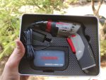 • المفك ببطارية قابلة للشحن و معا الشاحن بتاعه.