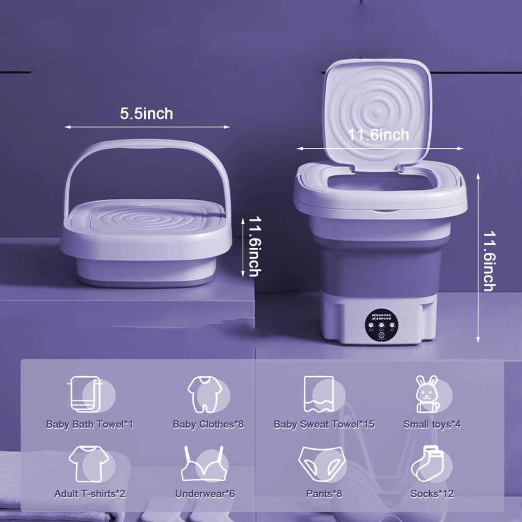 “قضت على مشكلة الغسيل في أي مكان! الغسالة المحمولة والسحرية اللي بتتطوي وتختفي، أحسن حاجه للسفرأو الشقة الصغيرة، أو حتى الغسيل السريع اليومي.” جربيها حالاً .