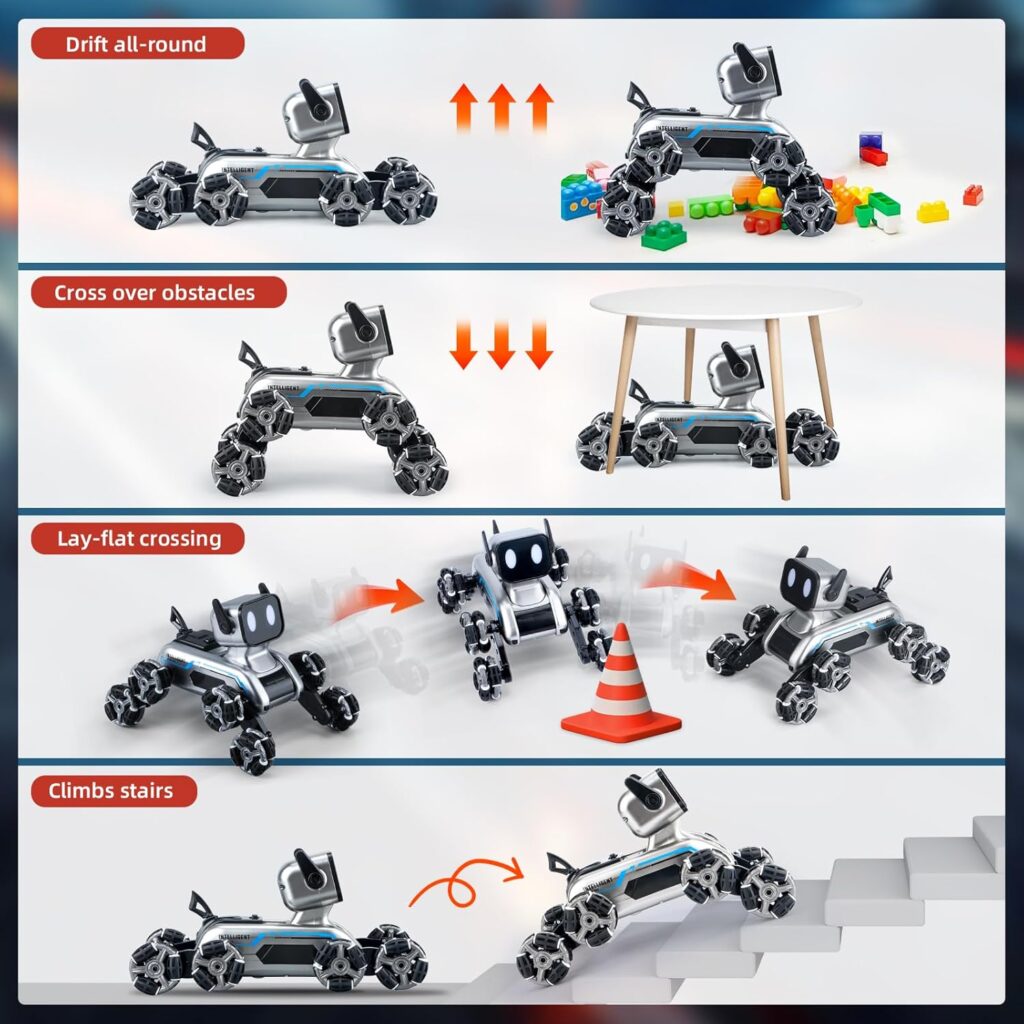 “كلب روبوت ذكي بيعمل حركات بهلوانية، بتحكم بإيدك أو بالريموت، ومعاه أضواء ومزيكا! 🎶🤩