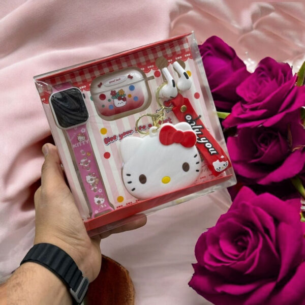 الطقم مزود بإكسسوارات صغيرة تضيف لمسة جمالية زي ميدالية وجه كيتى وميدالية أرنب بفيونكة، تعبر عن شخصية مرحة ولطيفة.