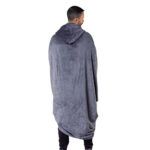 بطانية قابلة للارتداء باللون الرمادي، مصنوعة من خامة مخملية ناعمة جدًا بتحتفظ بالحرارة وتدي إحساس دفء رهيب. تصميمها واسع ومريح وبييجي مع هودي وحبال ربط عشان تقدري تثبتيها وما تتحركش. مناسبة للوقت اللي قدام التلفزيون، الشغل على اللاب، أو حتى النوم الخفيف.