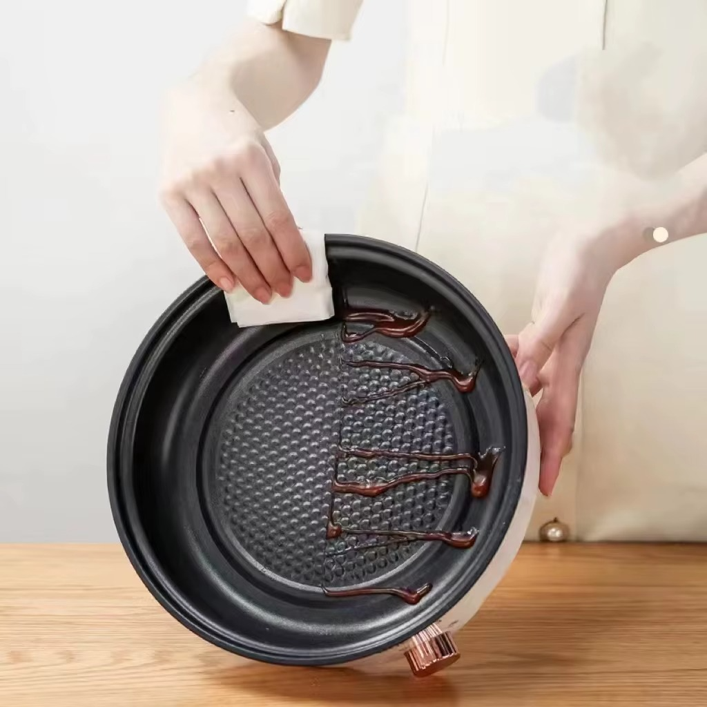 • بفضل الطبقة الغير لاصقة، الجريل سهل التنظيف بلمسة واحدة، مش هيحتاج منك مجهود أو فرك شديد، مجرد مسحة بسيطة وهيرجع جديد تاني.