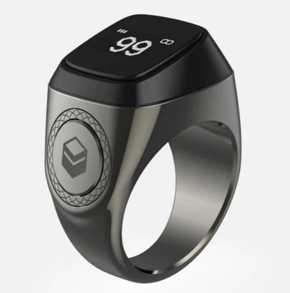 • الخاتم حجمه صغير وكمان فيه شاشة عشان تعرض عليه عدد التسبيح.
