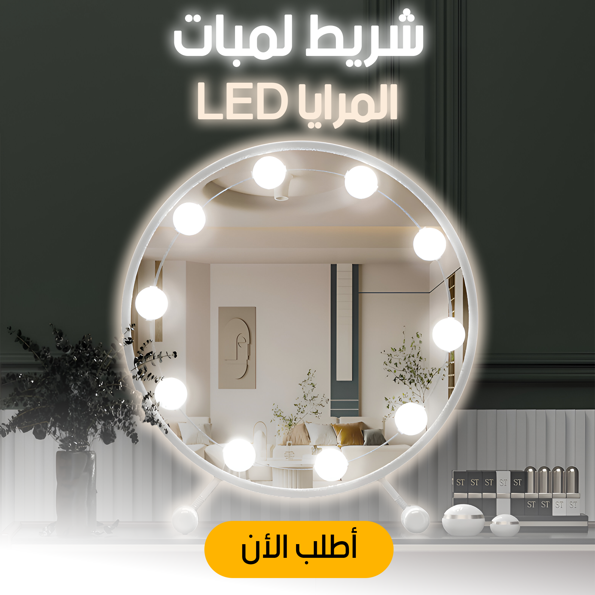 • “بدل النور القوي والمتعب، جربي نور LED الناعم! شريط LED للمرايا هيخلي مرايتك شكلها حلو ونوره الناعم هيحمي عينيك.”