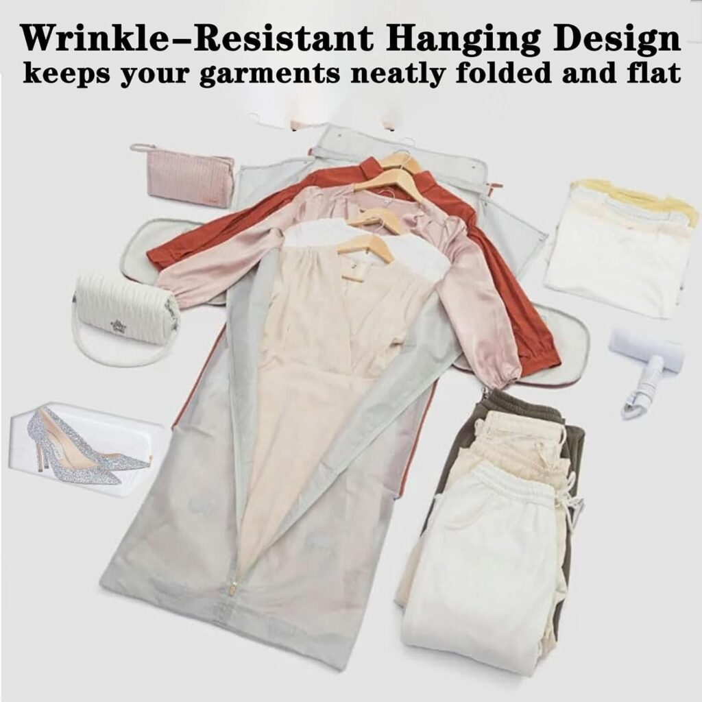 بمجرد ما تفردي الشنطة بتتحول لشنطة تعليق لحماية الملابس من الكرمشة، خصوصًا البدل والفساتين. بتحافظ على شكل لبسك في المناسبات والسفرات.