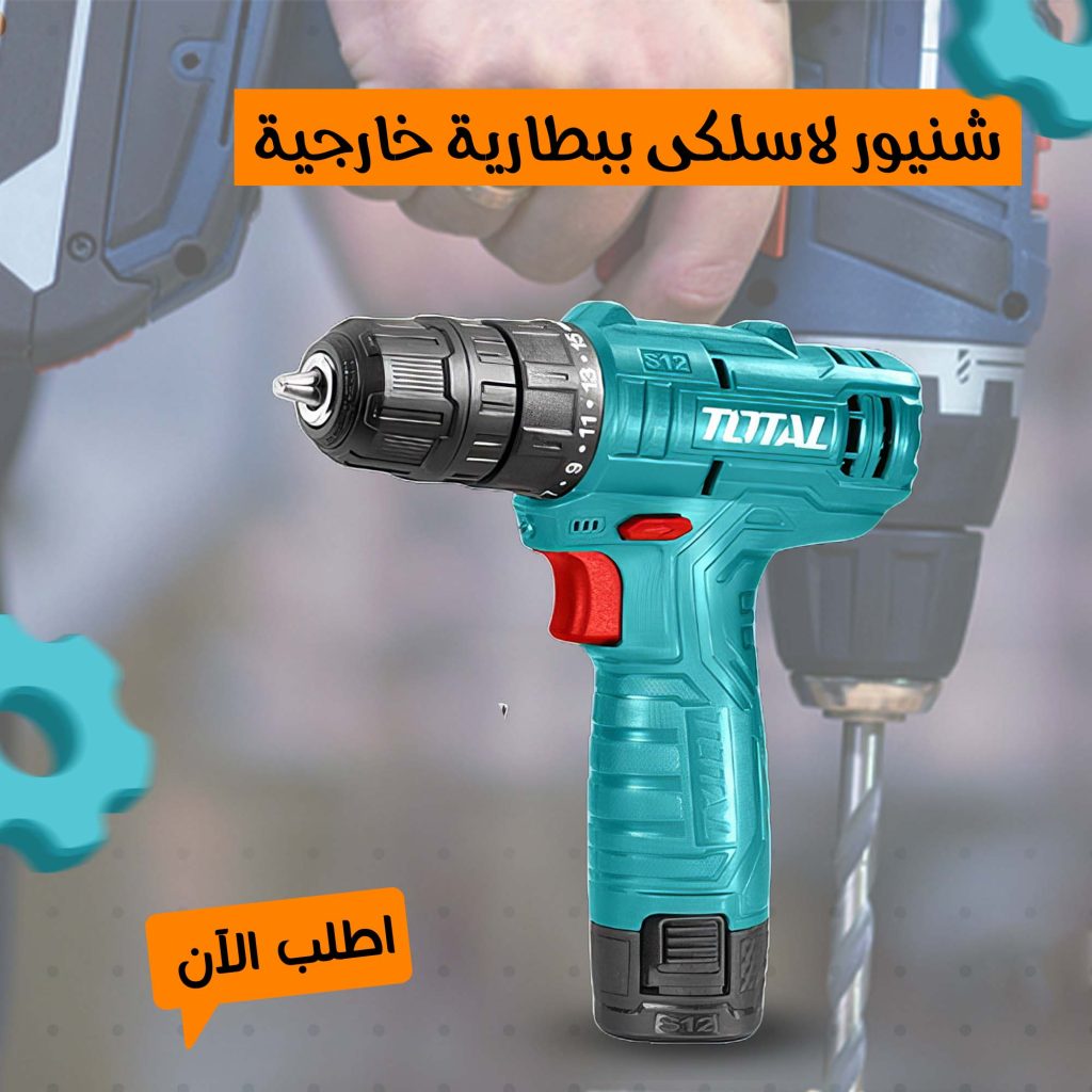 • عشان تريح دماغك من التكسير والتخبيط في الحيط وفرنالك شنيور لاسلكى ببطارية خارجية TOTAL بسعر مش هتلاقيه غير عندنا وبس, الحق اطلبه قبل نفاذ الكمية.