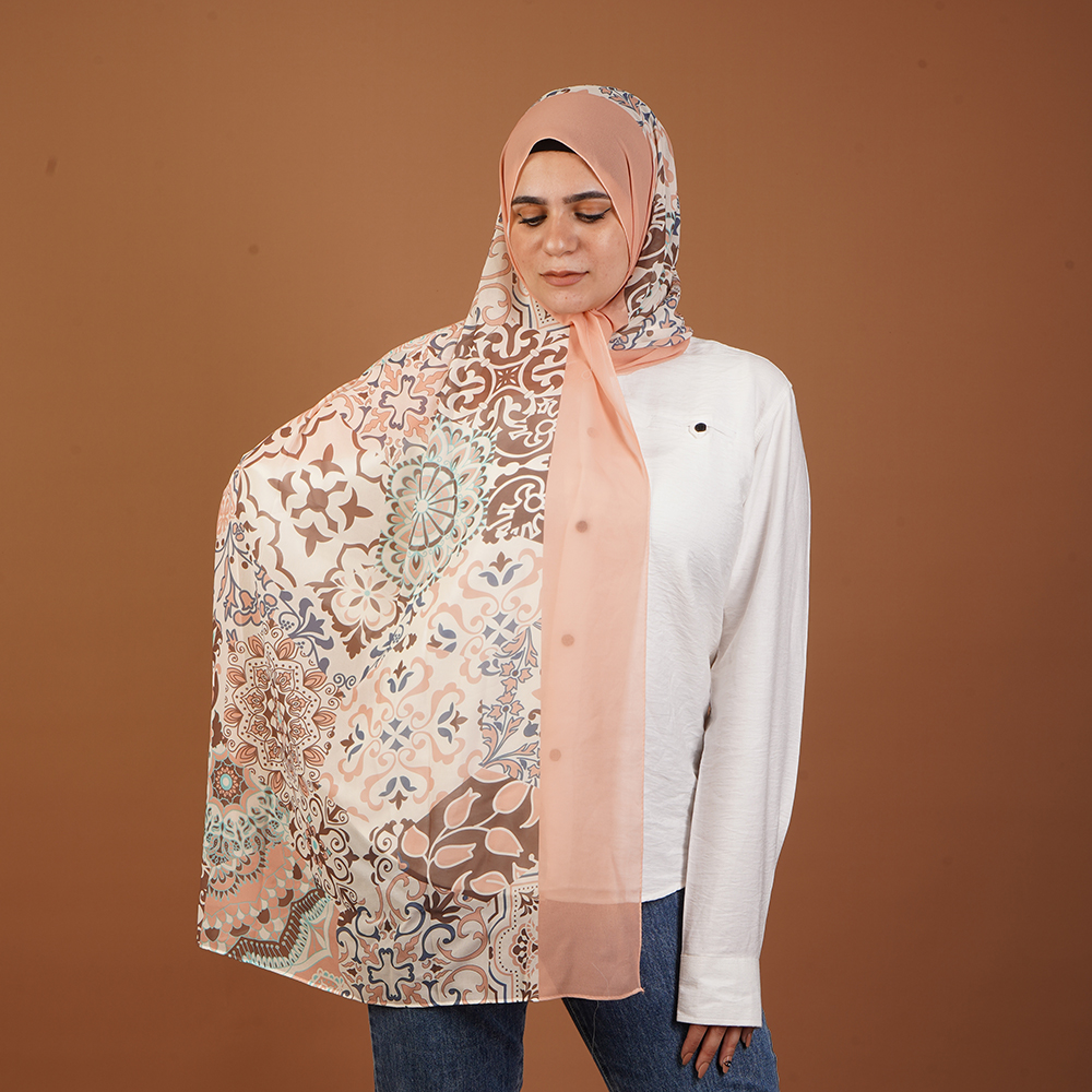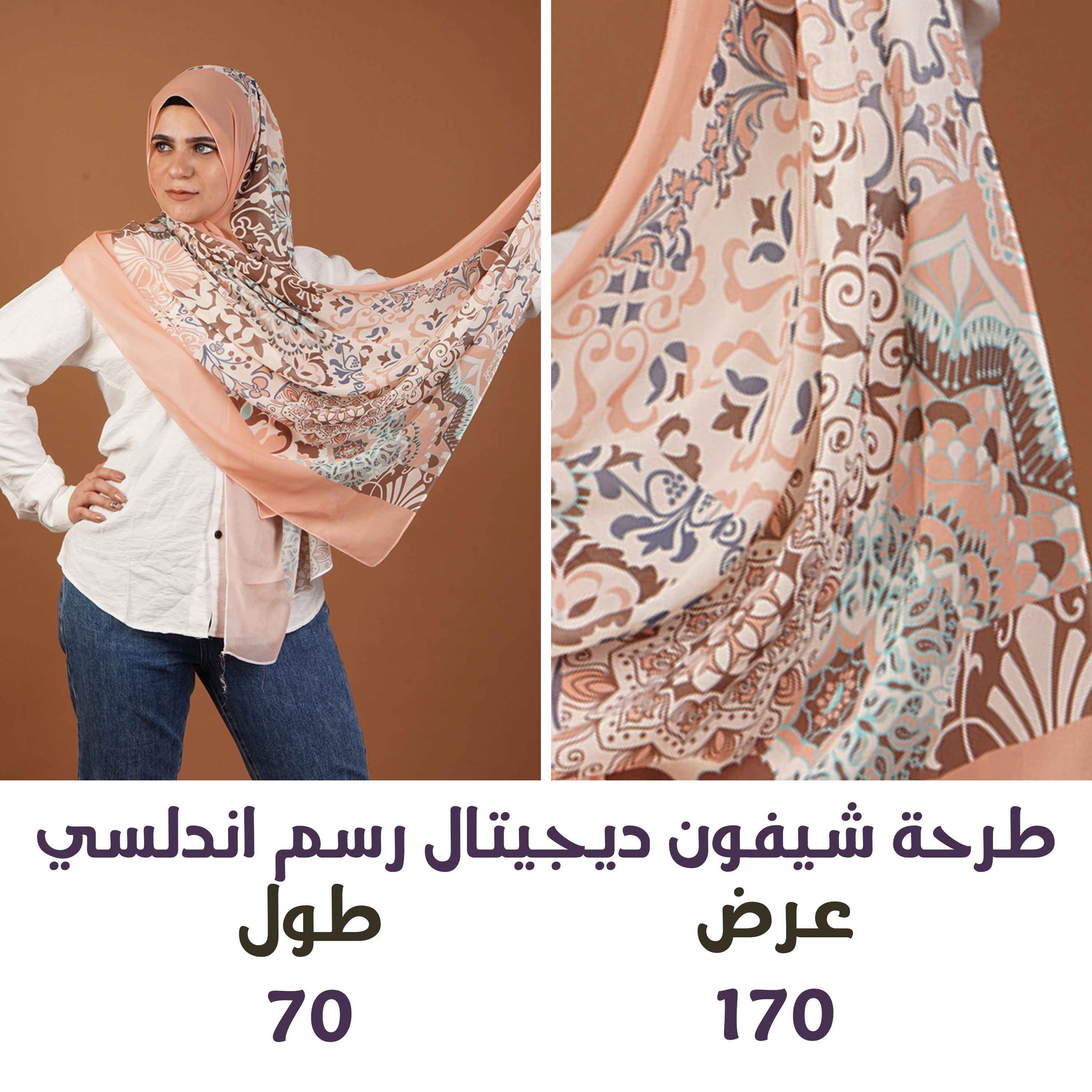 طرح شيفون كريب ديجيتال رسم اندلسي ناعمة جدا على البشرة، بنقشات شيك والوان على الموضة