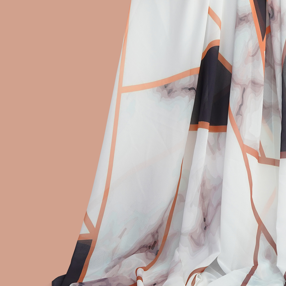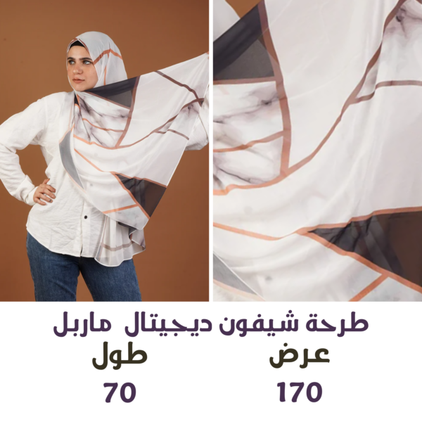 طرح شيفون كريب ديجيتال ماربل ناعمة جدا على البشرة، بنقشات شيك والوان على الموضة