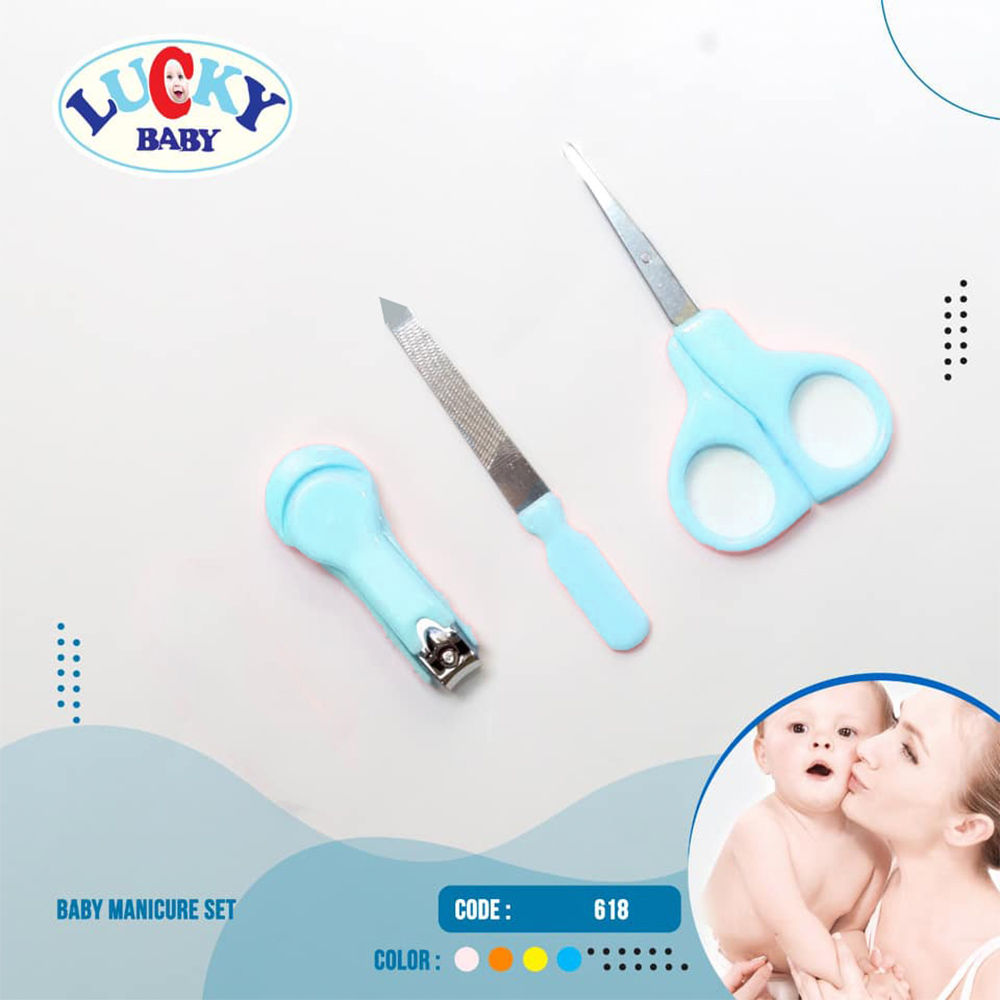 طقم العناية بالطفل لاكى 5×1 لأنها بتتكون (فرشاة – مشط – قصافة – مبرد ضوافر- مقص).