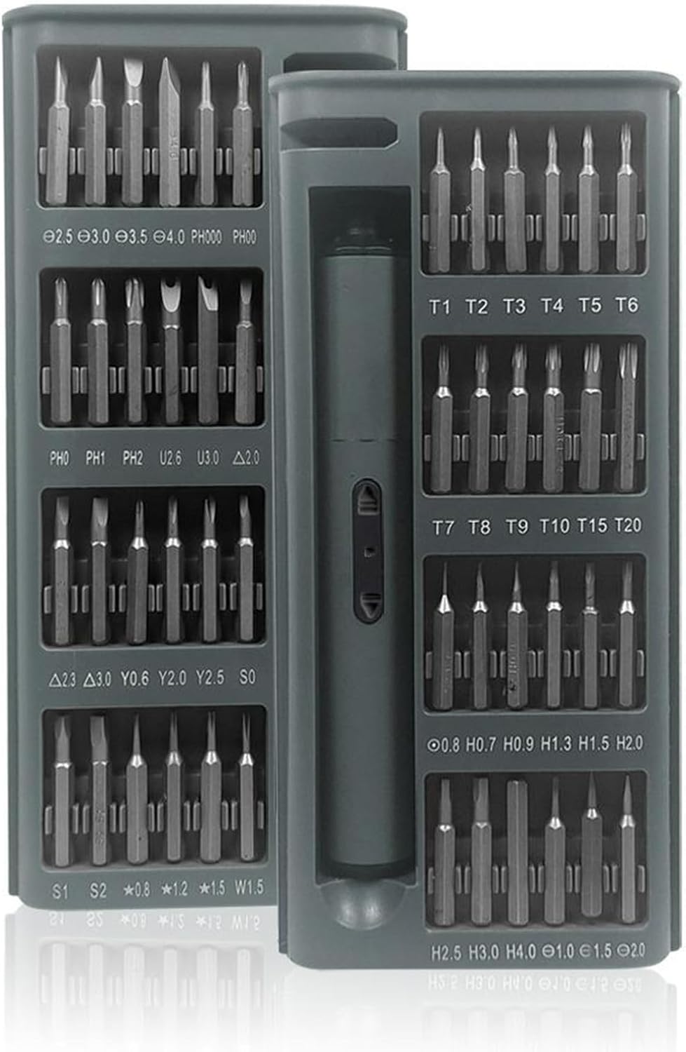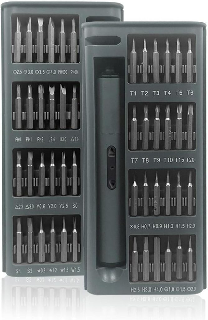 الطقم فيه 48 رأس مختلفة من خامة S2 ستيل القوية، يناسب كل أنواع المسامير – مثالي للموبايلات، اللابتوبات، الكاميرات، الألعاب الإلكترونية، الساعات، وأكتر.