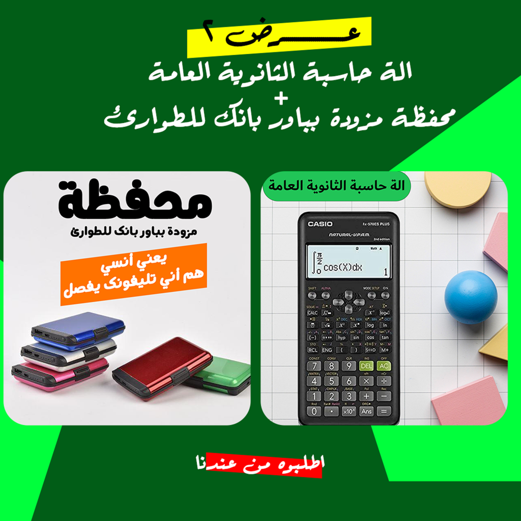 • 🖩💼 عرض الــ 2 استمتع بالآلة الحاسبة لطلبة الثانوية العامة + محفظة بباور بانك للطوارئ!🔋 توفرلك راحة في المذاكرة وأمان لبطاريتك في أي وقت وأي مكان ✨
