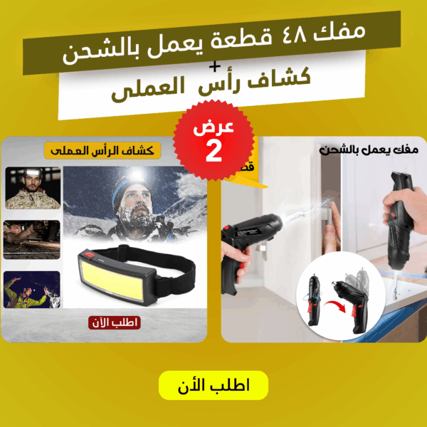 مفك 48 قطعة بالشحن + كشاف الرأس العملي … الاتنين مع بعض بسعر لقطة 😍 الحق العرض قبل ما يخلص! 🚨