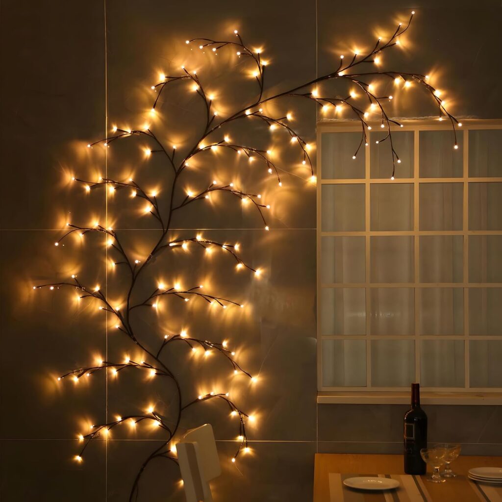 • الأغصان قابلة للثني والتعديل عشان تشكّلها بالشكل اللي يناسب ديكورك، تقدر تفرشها على الحيطة، تزين بيها المرايات، أو حتى تحطها حوالين الصور والتحف لإضاءة جذابة وساحرة.