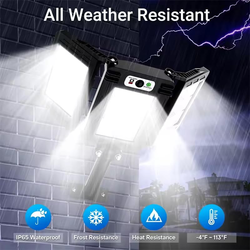 مميزات: موفر للطاقة، ضد المية، حساس حركة، سهل الطي، بدون أسلاك