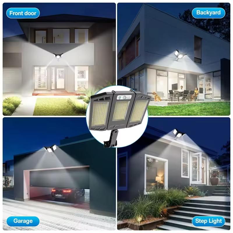 كشاف ثلاثي بالطاقة الشمسية 🌞 بينورلك ليلك ويوفرلك في الكهرباء 🔋 اضاءة جامدة 💡، وبيشتغل لوحده أول ما حد يقرب 🏃♂️⚡