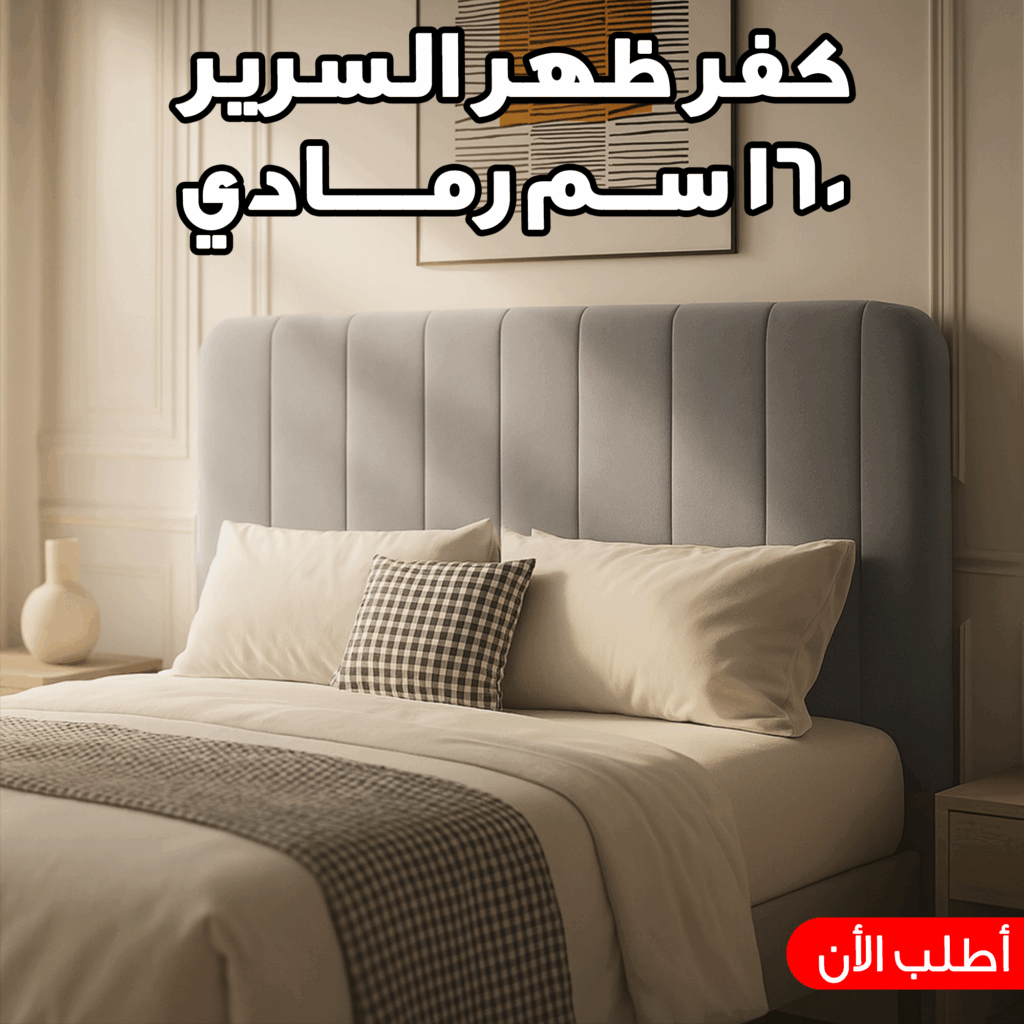 بـ كفر ظهر السرير الرمادي 160سم … اللمسة اللي بتدي أناقة وفخامة من غير ما تغيّر السرير!