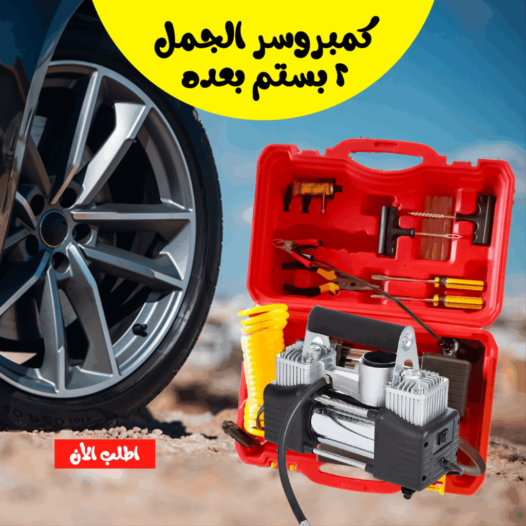 • 🐫💨 كمبروسر الجمل 2 بستم، يملالك الكاوتش في ثواني وبدون مجهود! 🔥💪 ومعاه كمان عدة لإصلاح الكاوتش عشان تبقى جاهز لأي موقف 💯🚗🛠️✨ الحق أطلبه.