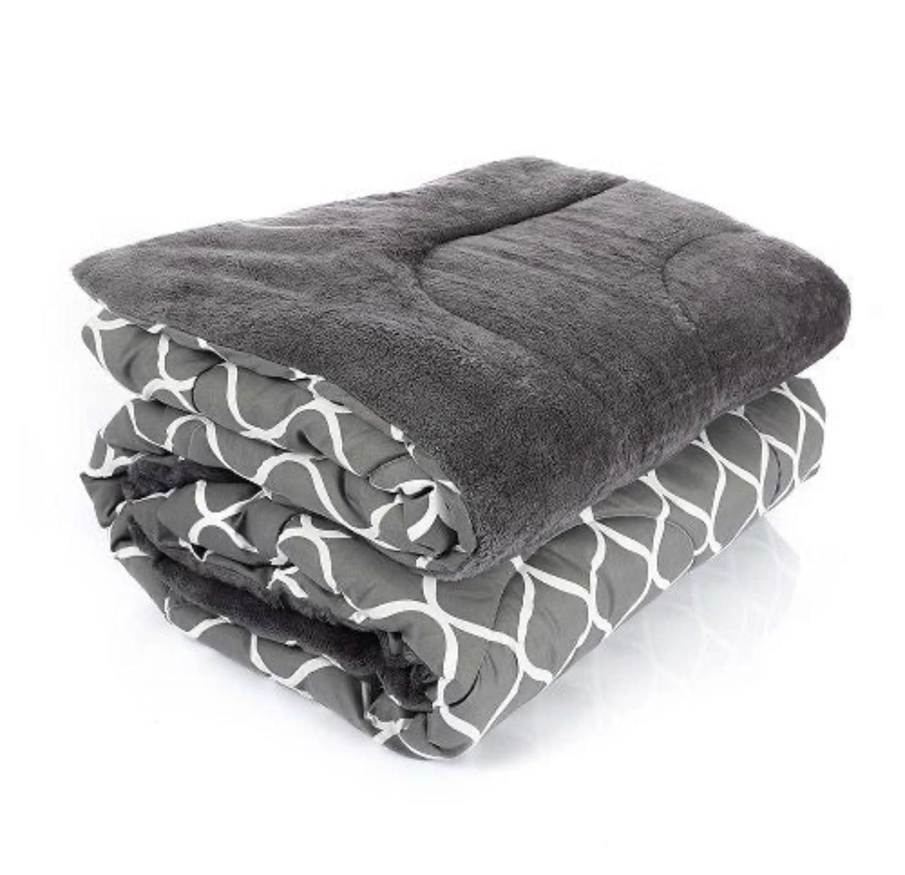 دفا وأناقة في لحاف واحد! ❄️🛏️ وش فرو كحلي أنيق + وش مطبوع سحاب وقمر، يقلب ديكور الأوضة ويخليك تنام دافي ومبسوط طول الليل.