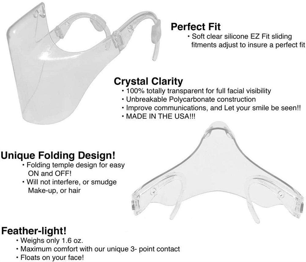 الماسك مبقاش مشكلة خلاص لأن دلوقت مع ماسك الحماية الشفاف هتحافظ علي سلامتك و سلامة عيلتك من غير تعب ولا المشاكل اللي بتقابلك ف لبس الماسك العادي، زي صعوبة التواصل بين الناس، تشبير النضارات، بيبوظ شكل اللبس لو رايح مناسبة-المميزات:-مناسب جدا للمناسبات و الأماكن المفتوحة-الحل المثالي لمنع تشبير النظارات-مش هتحتاج تشتري كل شوية ماسك، لأنه سهل في التنضيف، بعد ما ترجع من مشوارك تغسله بمايه سخنة وتلبسه تاني يوم عادي-غير انه مش هيداري الميكب-مضاد للرذاذ-مضاد للدخان-مانع للبخار-الوصف:-ماسك الحماية الشفاف-مصنوع ١٠٠٪ من بيور بولي كاربونيت
