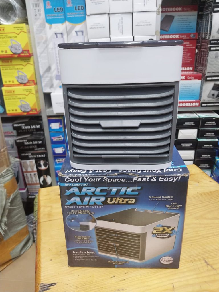 حيث يمر عبر فلتر مائي ليخرج باردا. -المنتج صغير الحجم ويستخدم لتطليف الهواء فقط بإضافة الماء المبرد أو الثلج